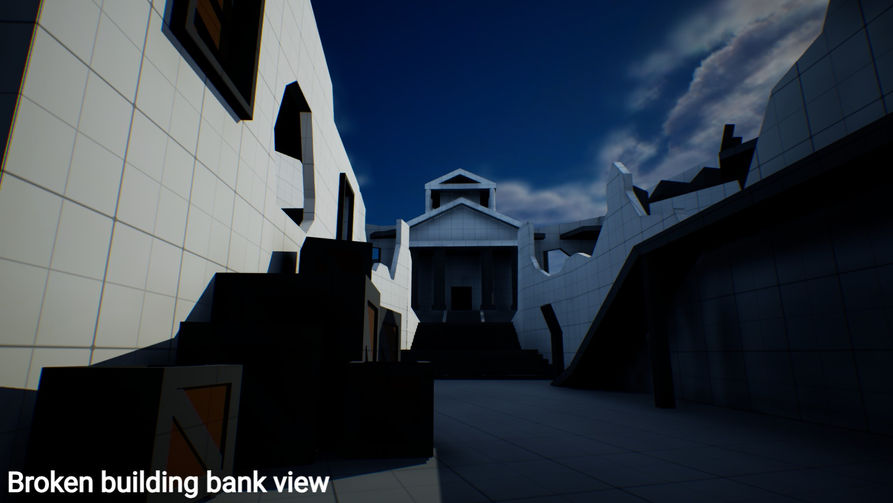 The level takes place in a war-torn city inspired by 1940s london, where a man has to fight his way to one of the last friendly strongholds found at the bank.